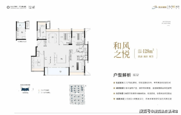 项目洋房 建面约128㎡户型已经触摸到高改层级,空间感堪比市面上150㎡以上户型;