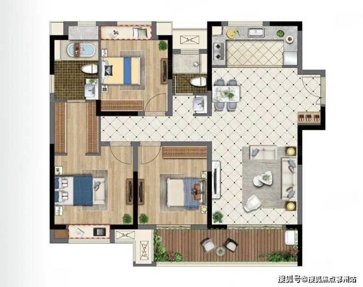 平层户型96 ㎡大阳台3房2厅2卫