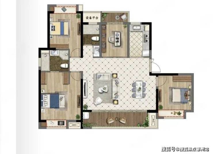 平层户型126 ㎡四叶草格局4房2厅2卫