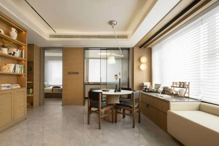 前排一线湖景楼幢 , 约12.4米超大面宽 、 四开间朝南 。实体样板房的餐厅在做了双排餐边柜后,座位依然阔绰。厨房也非常自信的放入了双开门大冰箱,对喜欢屯各种生鲜食品、饮料的年轻人来说真是心头好。