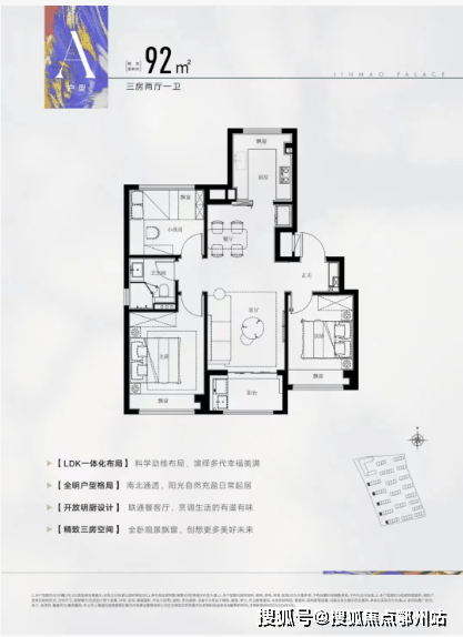建面约92㎡3房2厅2卫