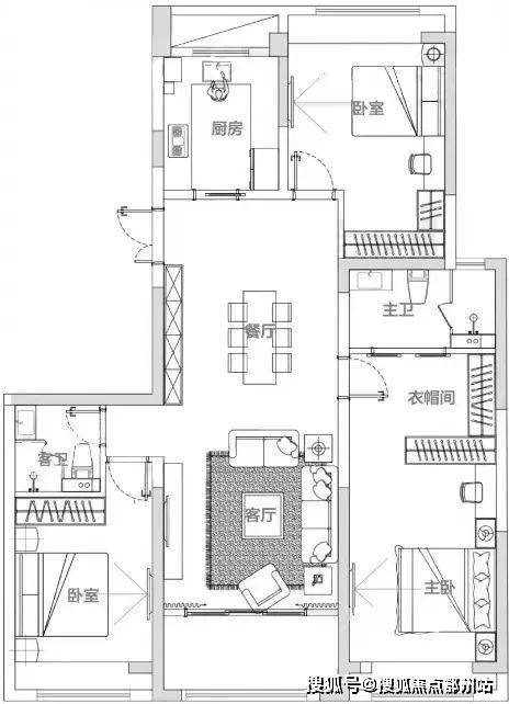 C户型 建面约168㎡3房中间套