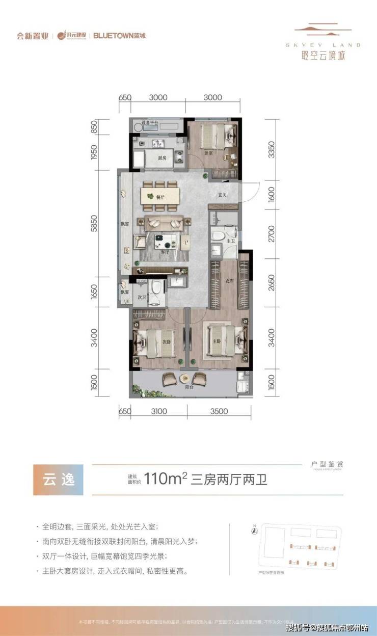 户型方面打造了建面约97-110㎡品质空间,对新生代的城市精英来说可谓是“真香”户型,各空间尺度均衡、动静分区,精心设计三开间朝南、餐客厅一体、套房式主卧等户型亮点,即便以后和长辈同住,也可拥有自己的私密二人世界。