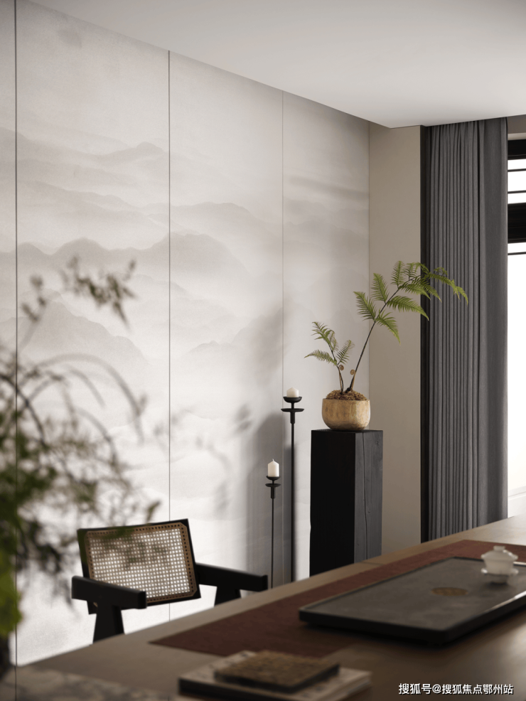 进退之间是人与景相逢将东方精神融入现代生活入户景观延续了山水园林的意趣,修竹如玉,流水汀步。随下沉庭院缓步慢移,即达地下二层的主客厅。