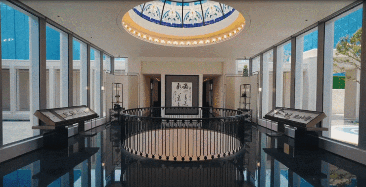 穿过缪斯艺廊、喷泉广场,当青翠的山色倒映在门前的镜面水池里,就可以看到园区大堂的门扇开启。进入大堂,大堂里的窗格可以浮现出莫奈睡莲画作中的那座小桥及项目精心打造的那方莫奈花园,志以通过对静谧追求的回应,抵达心灵的永恒。