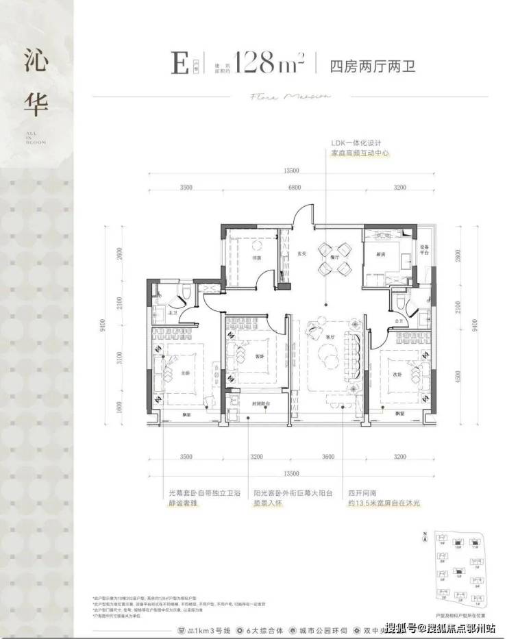更大一些的户型如建面约 108㎡、120m²的四房边套 设计,不仅面积宽敞,南向双卧室+客厅大飘窗的设计也提升了居住舒适度。