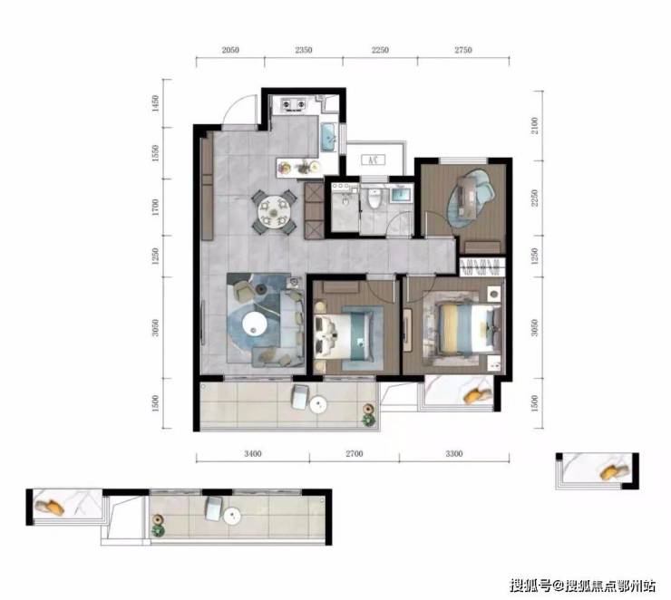 梁志天大师手笔,为其倾情擘画,96㎡户型格局做到了3房2厅1卫,白与深灰辅以黑,使空间更富有层次感,深与浅的碰撞是简约又不失高级的搭配。