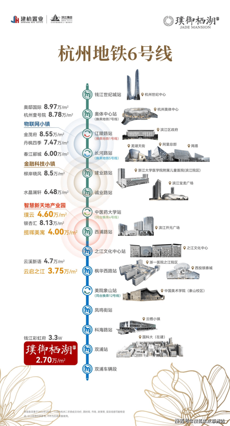虽然璞御栖湖府的均价只需要约2.7万元/㎡,但是TA的地段可丝毫不拉胯。 它位于西湖区的双浦板块,直线距离地铁6号线双浦站仅约500米, 你可以5站直达之江文化中心,6站直达滨江,也可以换乘1/2/4/5号线前往钱新或者全城,甚至,等12号线正式投入使用,还能直达未来科技城核心。紧邻的彩虹快速路和紫之隧道则成了自驾党的便捷之路。