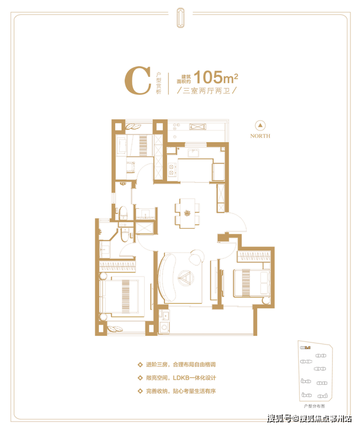 建面约103㎡的三房两厅两卫