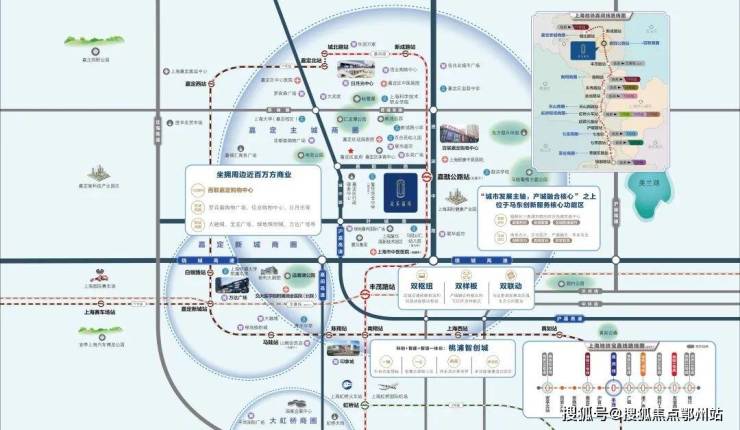 未来乘坐嘉闵线(在建中) 即可实现2站南翔,6站直达虹桥枢纽,沿途可以换乘十余条轨交(含在建&规划线路) ,快速通达虹桥枢纽、人民广场、陆家嘴、七宝、莘庄等核心区域。