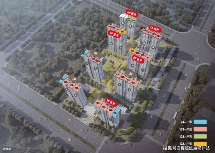 项目首开楼栋位置为1#,5#,6#,7#,8#栋,具体位置如图: