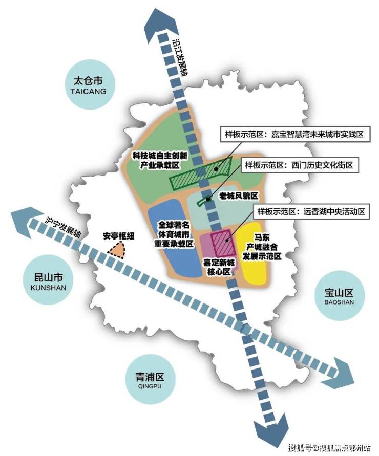 根据十四五规划,嘉定新城将形成“一核一枢纽、两轴四片区”的规划新格局。
