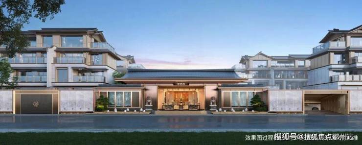 「望潮」低密产品的设计,延续了一期经典的禅境界中式风格,提取了禅境中式风格中的古朴雅致,取形于中国古代建筑中的悬山顶,营造庄严精致的外形。