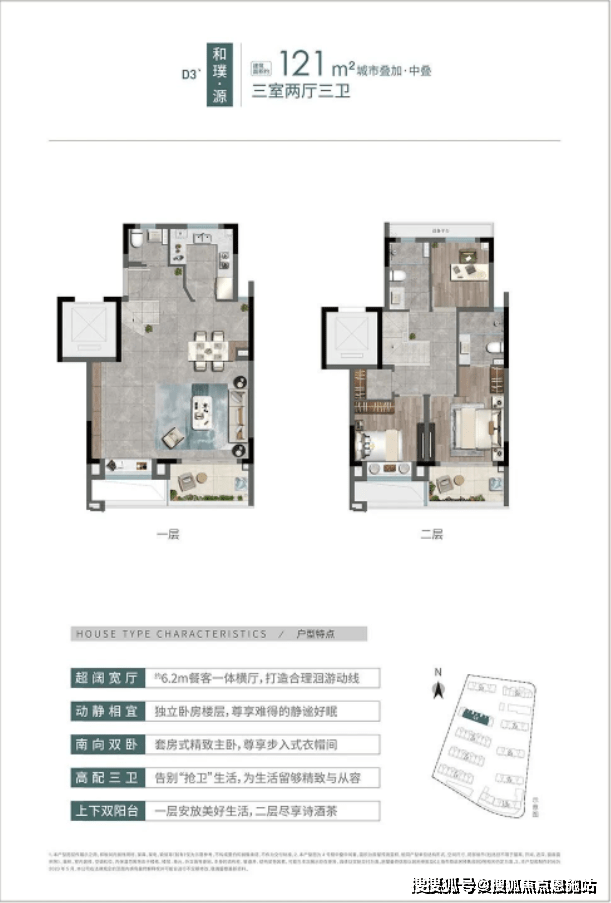 对于新时代都市人而言,注重自我生活品质的同时,也为家人考量兼容且独立的成长型生活结构,中交.松香源著约117-121m²城市叠加户型,
