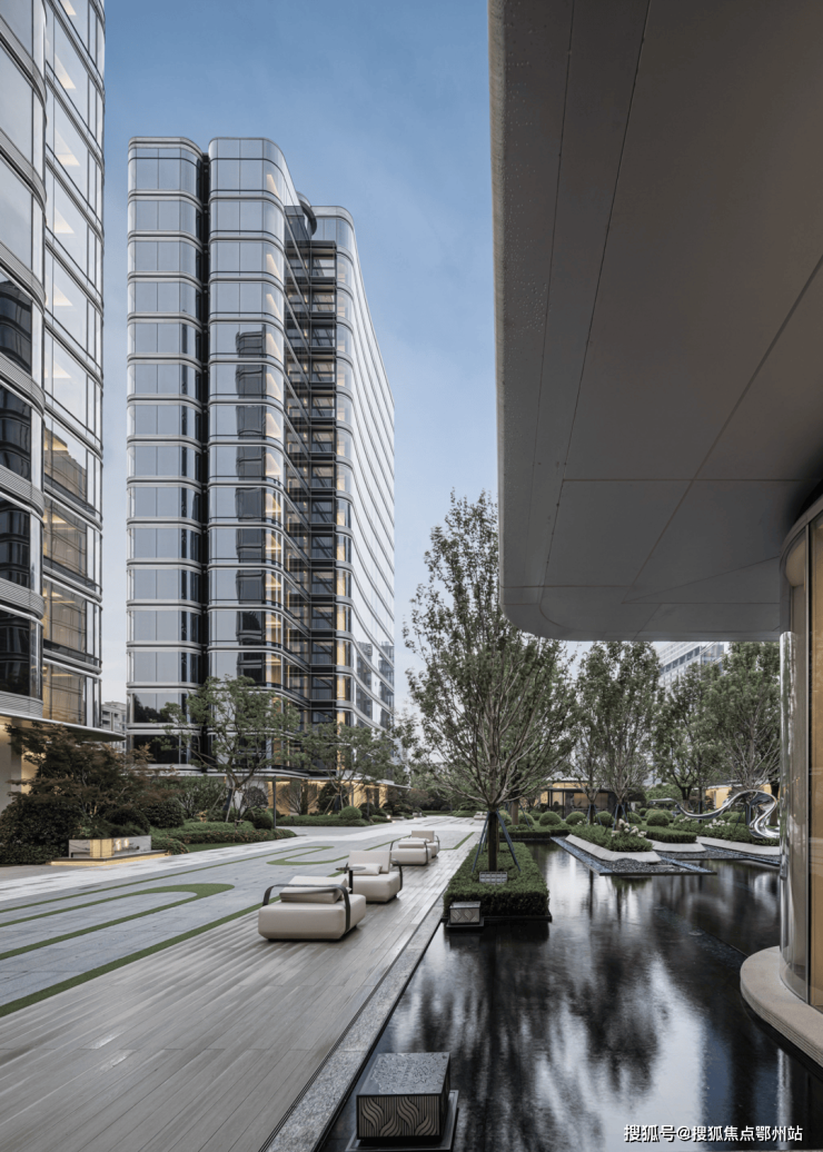 游艇”造型辅以流动的水波立面,舒展的横向线条, 圆润的转角处理,彰显钱江新城和江河汇的华贵气质,让建筑,仿佛原本就应该出现在此。