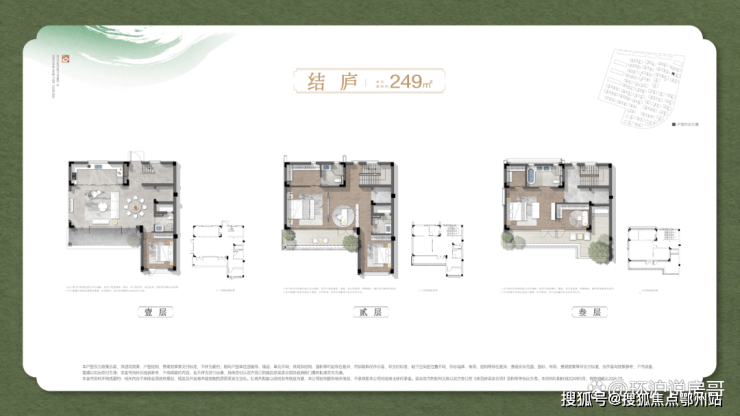 面积配比:约200-680㎡中式合院;约195-213㎡宋风叠墅