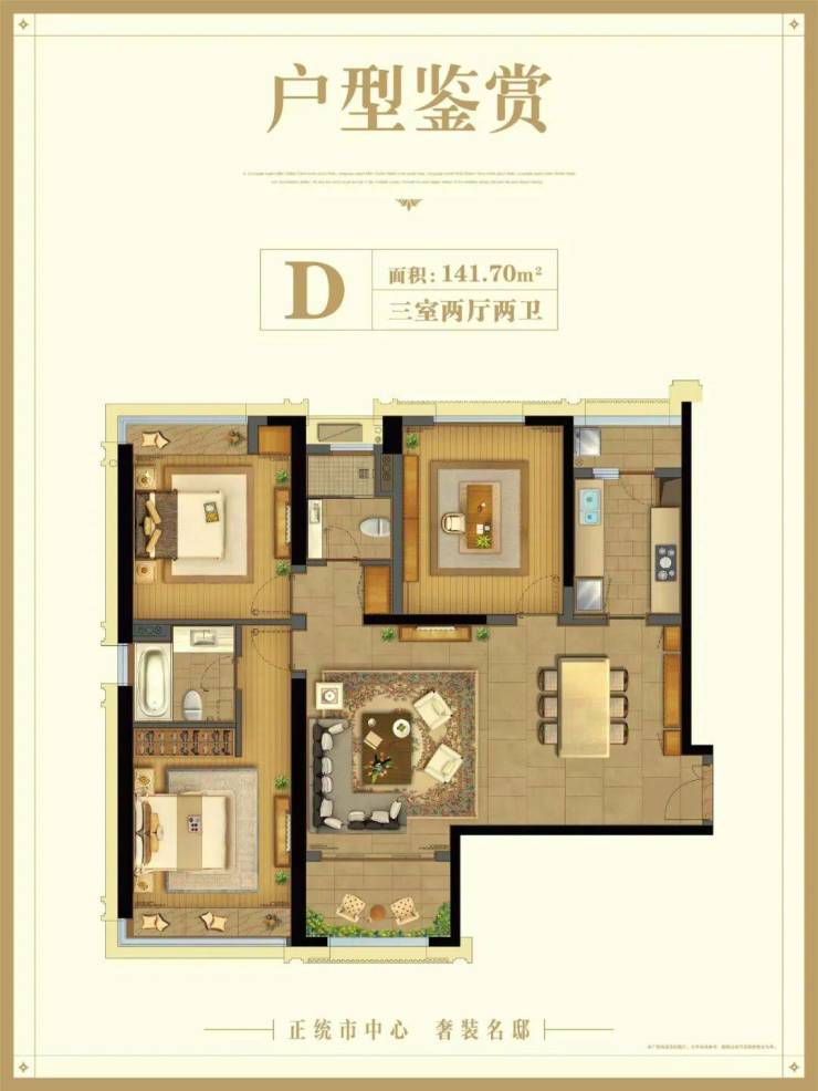 大横厅设计让空间利用率与居住舒适度大幅提升,三个卧室布局合理,保障隐私,全卧飘窗增加采光与空间感。
