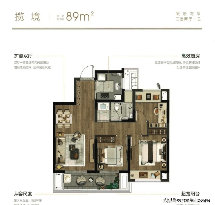 洋房143在设计之初就已考虑如何更多地与阳光呼应,满足更多家庭向阳而生的理想。 通透户型 ,宽阔尺度,成就 横厅、双卧南向三开间 ,