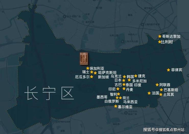 【国际浓度TOP】 现有28个领事馆驻扎,聚集了全市三分之一的外国领事馆和一半的外交官邸,外籍人口占比超30%,是上海著名的对外交流窗口。(信息来源:上海长宁门户网站)
