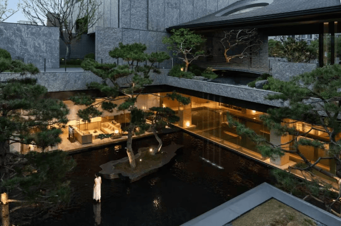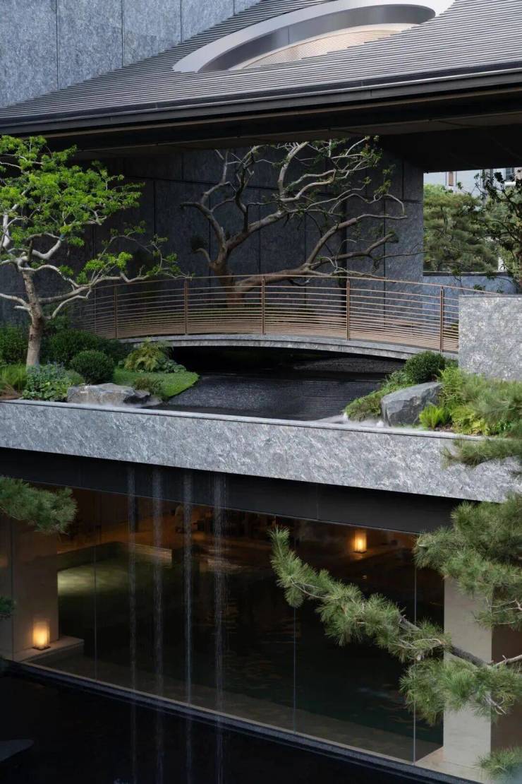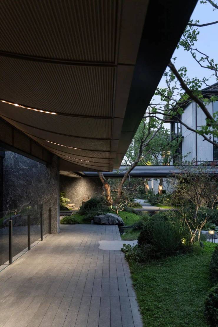 整个建筑外立面更是将现代美学融入。石材+铝板+大面积玻璃的组合,赋予空间前所未有的通透与灵动。就像是一件艺术品,兼具东方韵味和现代质感。