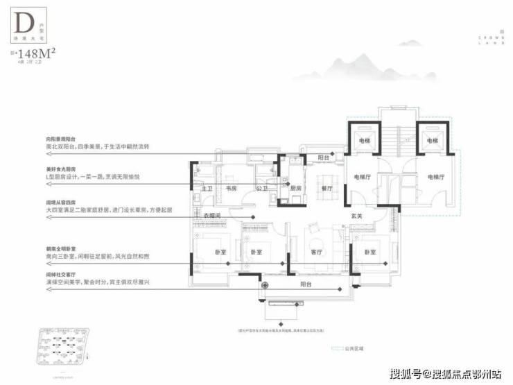 在园林的深处,是间距分明的楼宇,更是未来理想生活的昭示。 148㎡品质住宅专梯专户达家,门厅私密空间灵活独享;客餐厅分别延伸 南北双阳台,空间通透; L型厨房,大空间高利用率,实用性加倍; 四开间朝南,主卧大套房自带衣帽间和独卫,满足精致生活需求。