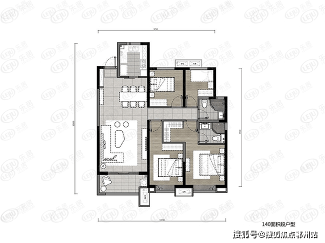 建面约140㎡四室两厅两卫户型方正的布局之下,享有南北通透的畅阔体验。