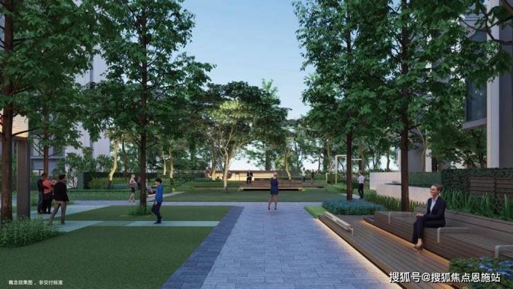 分为纵横十字景观轴网格式排布,汇聚多样化、多年龄段活动场地,营造一个有艺术的、充满生机的活力居所。