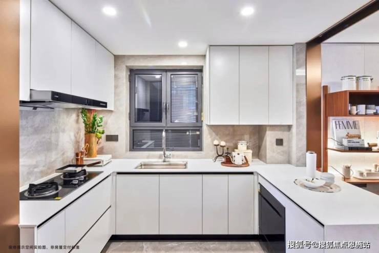 其次,厨房也配齐了品牌 燃气灶/油烟机/橱柜 三件套,增配洗碗机,再加上 单体大水槽、抽拉式水龙头、金属玻璃门 ,在单价3万级的楼盘中属实难得。