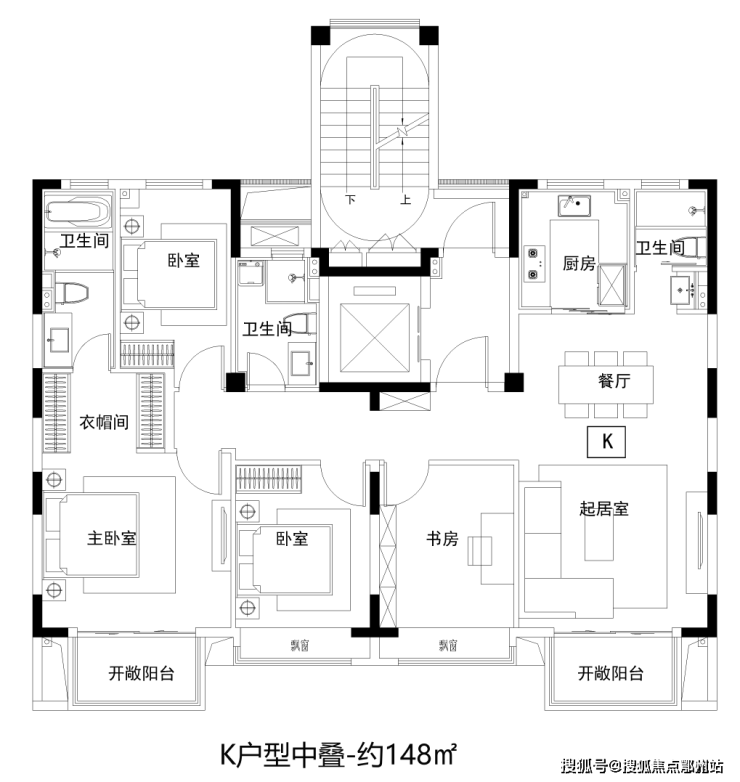 我们以建面约148㎡下叠为例:步入独立玄关,入眼便是阔绰客厅联通的宽景大阳台,奢阔客餐厅、景观阳台、以及人性化的厨房完美连接,LDKG一体化公区内,视野贯通;楼上楼下的设置令人羡慕,动静分区,空间划分更符合人居生活理念,舒适度爆表。