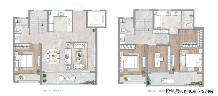 约160㎡ 4室2厅3卫 上叠:上叠配星空露台,享受私密与尊崇品质。