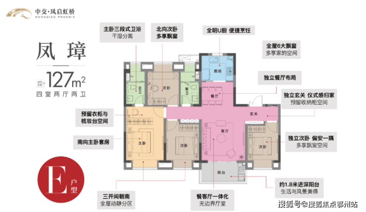 E户型 | 4室2厅2卫 | 建筑面积约127㎡