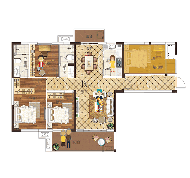 户型宣言:在更大的空间,为重要的家人,带来更多的舒适。