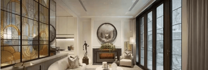 复刻和平饭店酒店式门庭,引入酒店式双线归家仪序,五进入户礼序与四重车仪之道,置身于海派隐奢的世界。高定酒店式落客区,尊奢入口,以国际顶奢酒店华尔道夫安曼式礼序营造,尽显尊贵风范。