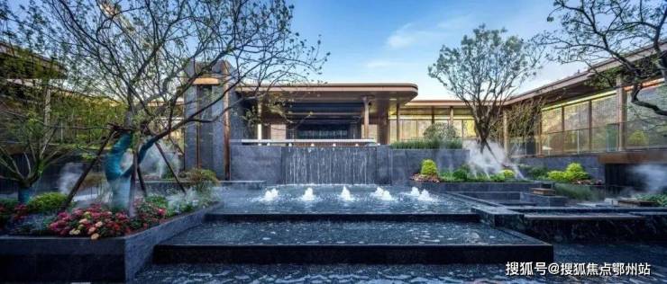 在园林内部抬高约2米,结合花园绿植、叠级水台、休闲卡座,打造出 下沉式立体山水景观