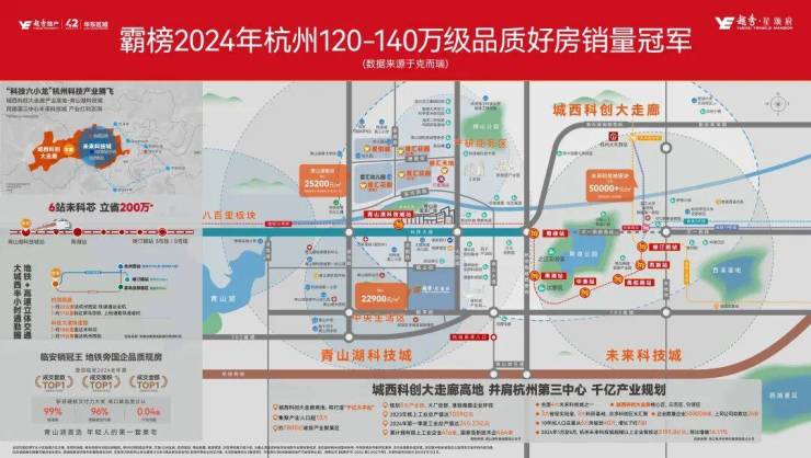 NO.3|叁 国企越秀地产,品质交付双保障 国企越秀地产,15载深耕青山湖,共建建面约150万方大城,相逢11000+户家人,坚持品质立身、高质交付,备受市场认可,多次霸榜青山湖热销。据克尔瑞有数据可查年份记录,自2016-2024年青山湖科技城一手普通住宅网签量34155套,其中越秀地产8469套,占比24.2%。每卖出近4套,就有1套为越秀地产匠造。霸榜2024年杭州120-140万级品质好房销量冠军。(数据来源于:克而瑞)