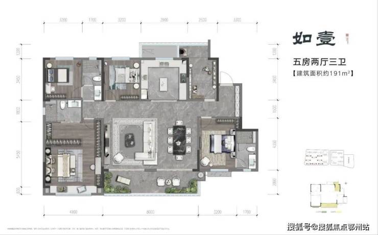 建面约191㎡的五房两厅三卫,属于高新区少见的大平层洋房,大开间朝南,南北双阳台、朝南开间双主卧,大进深可做三段式纵向设计……在户型空间打造上做到更高的创新及突破。