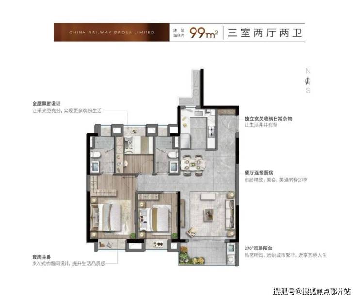 超高得房率是基础,更妙的是主卧套房设计,终于告别“衣柜堵门”的狭促感,私密性和舒适感一步到位;多处灵动的飘窗设计绝非摆设,它可以是你的小小阅读室、是迷你的花园、是猫咪晒太阳的专属领地,是你任何想要打造的个性化小空间......