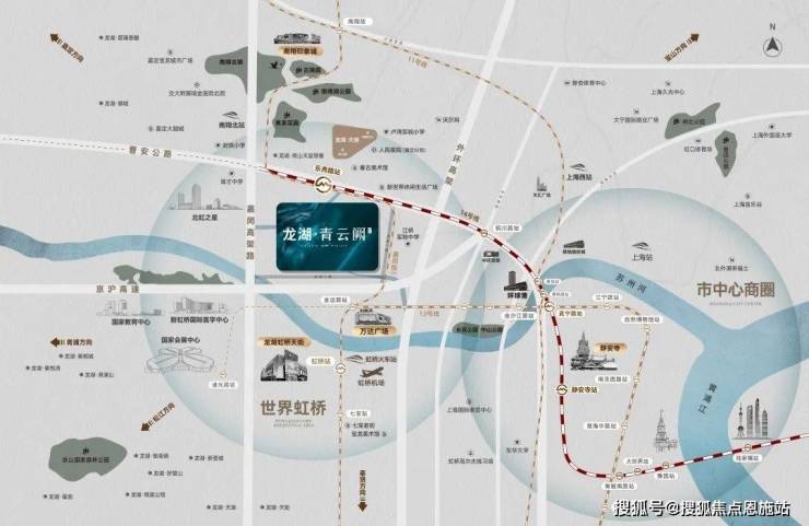 北虹桥到人民广场仅12公里,到内环线仅7公里,交通是巨大亮点,这里拥有14/嘉闵线 (在建中) 3条高能级轨交。尤其是14号线,重要程度完全不输2号线。