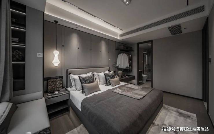 奢华主卧套房,开间达3.15m左右,双排独立的衣帽间,私密感和尊崇感超强。景观飘窗+超高窗墙比,根据喜好进行个性化的布置,打造一方专属空间。