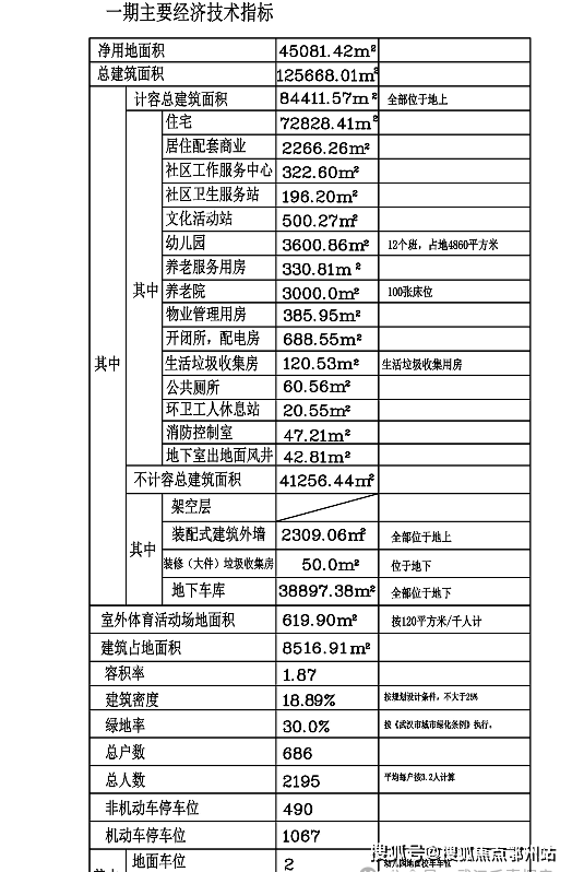 1.规划指标:占地面积7.82万方,计容建面18.77万方.容积率1.87,一期总户数686户,车位配比1:1.55.