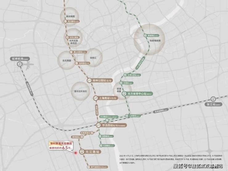 极速出发,5站徐汇, 9站上海南站,12站漕河泾站,通勤快人一步。 经15号线,换乘机场联络线(在建),向西7站虹桥,向东7站张江;经15号线换乘地铁19号线(规划),9站前滩,从城心大市中心,极速通达。