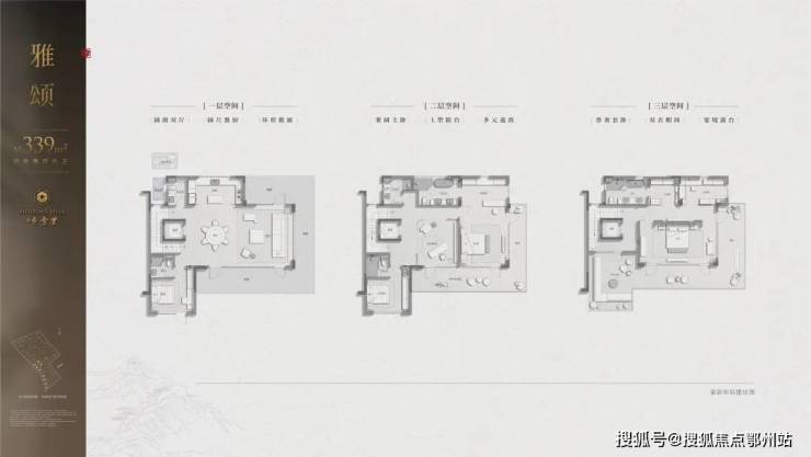 中间套300㎡地上三层双主卧套房设计,每间卧室连通露台或庭院;L型景观面实现“移步异景”。