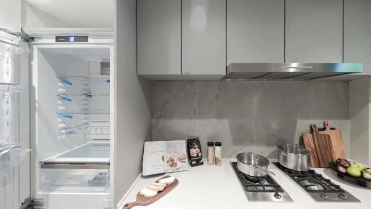 厨具方面,油烟机、灶具、洗碗机、烤箱、甚至一般不作为交付的冰箱,均采用了国际知名品牌—— 美诺 (或同等档次),这样的五件套配置放眼全市豪宅都非常罕见。