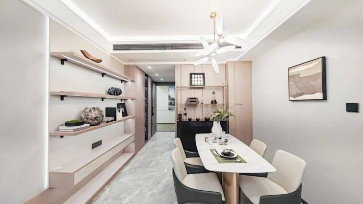 第三个亮点, 是客餐厅一体化设计, 外连阔景阳台,采光非常好,空气更加流通,同时增进了家人间的互动。