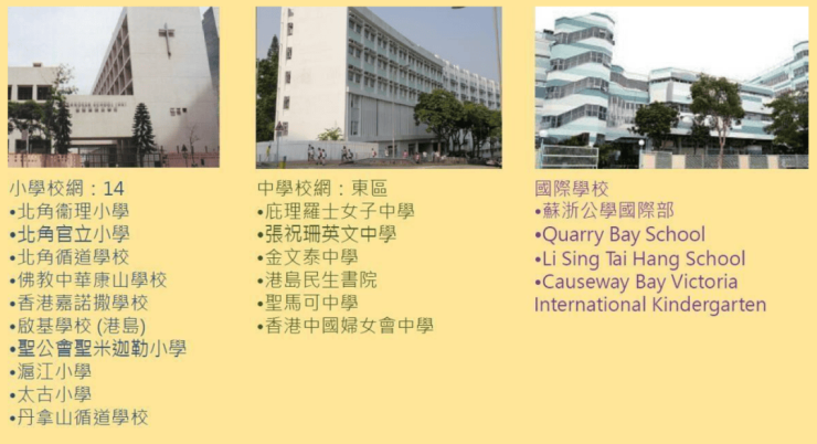 学校方面 ,小学属于14校网,中学则属于港岛东区。