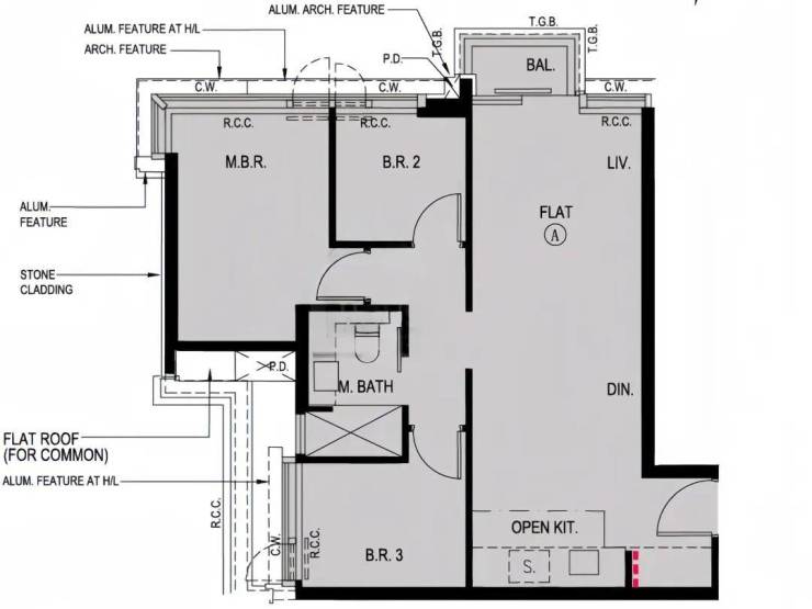 项目单位 实用面积286至2373平方呎(约27至221平方米),间隔包括开放式至4房 ,以3、4房户为主。