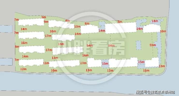 我们看浩运府的总图,项目亲临塘南河,是三面环水的宝地,整体与城市繁华、绿意融合,形成以社区为主的「超级界面」。