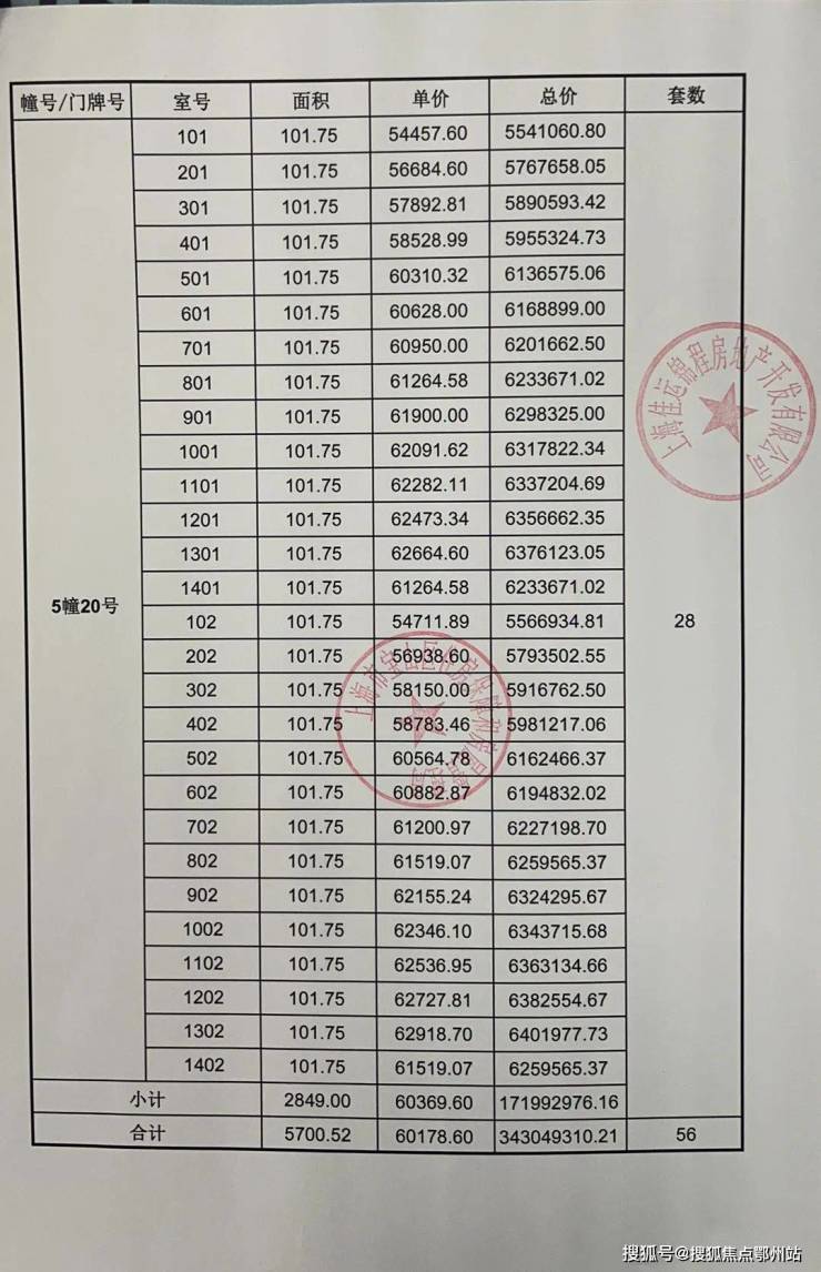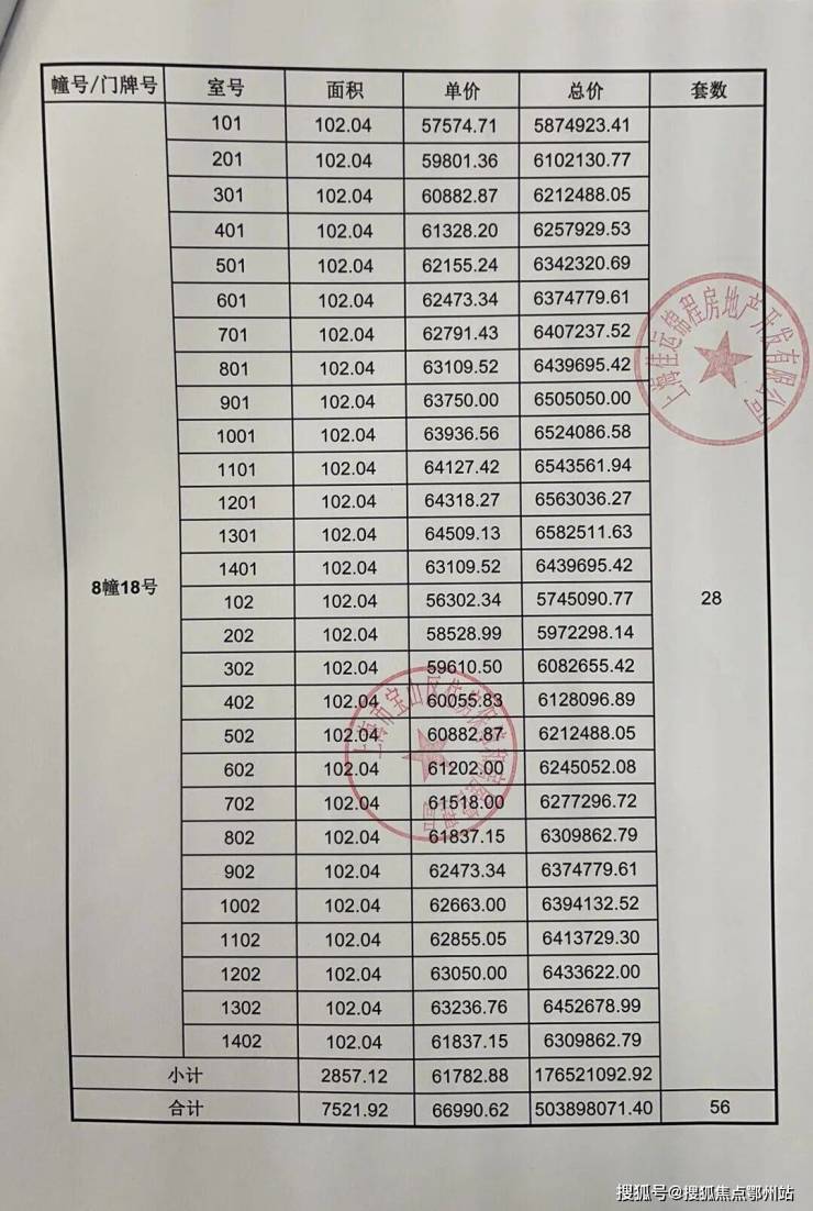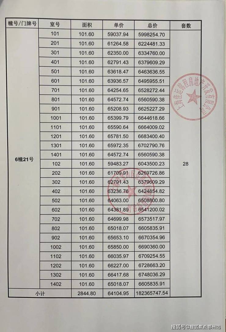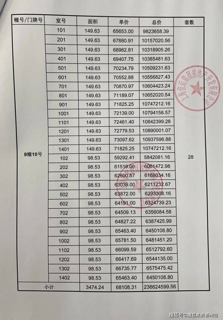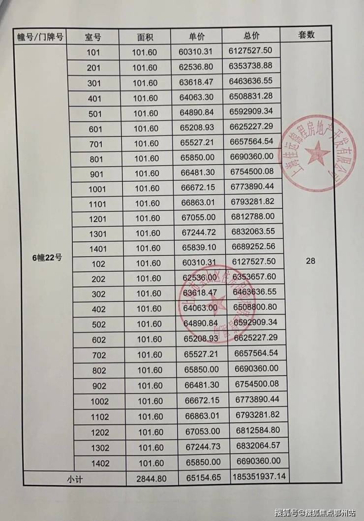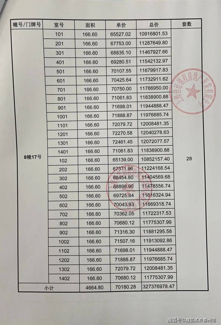一房一价表发布: