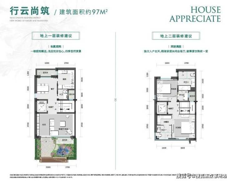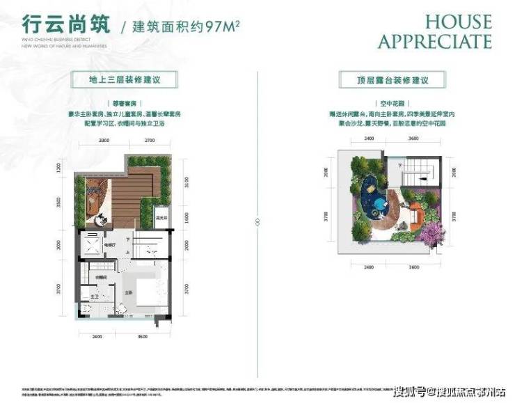 拓展面积:97㎡可得350㎡左右,132㎡可得470㎡左右
