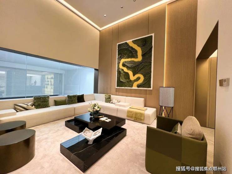 进入客厅,米白色的沙发搭配墨绿色的地毯让人眼前一亮,高级感油然而生。除了亮丽的装修风格,约250%的超高拓展空间也是让人赞叹不已,聚会、休闲、改造、观影、品茶、赏景…….一键解锁生活所有可能。